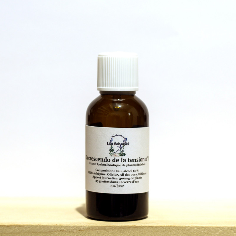 Aubépine, Olivier, Ail des ours, Hibiscus, Alcool 60%, Eau