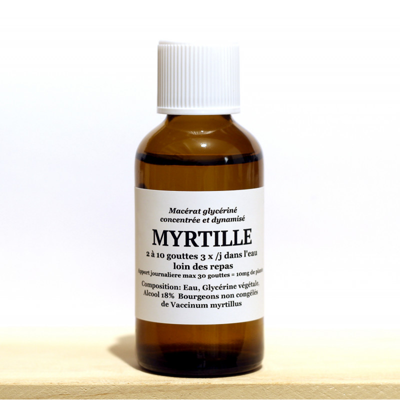 Les bourgeons de Myrtille protègent la microcirculation cérébrale, rétinienne et de l'oreille interne. Ils baisse le taux de sucre  dans le sang et améliore la vue