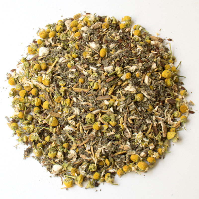 L'infusion est composée de: Matricaire (riche en polyphénols, elle est un excellent anti-inflammatoire), Guimauve (adoucissante grâce aux mucilages,)